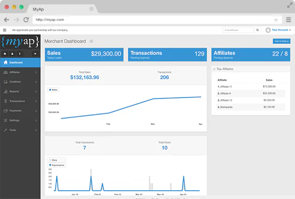 Eine umfassende Affiliate-Tracking-Plattform mit Analysen, Benachrichtigungen und mehr.
