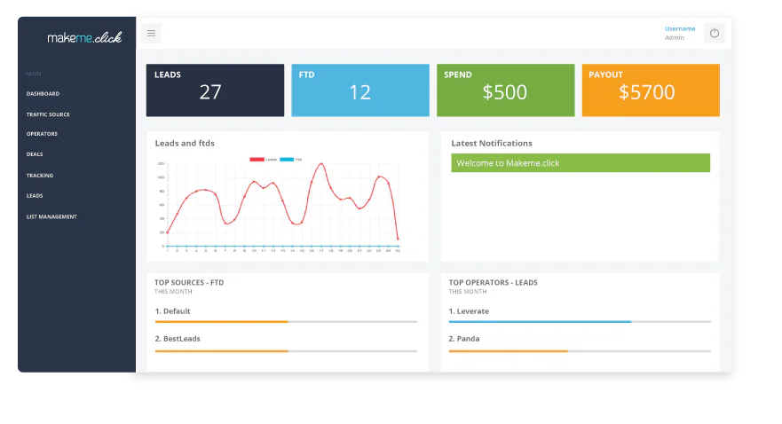 Built for Marketers and Affiliates, we provide a variety of features: *Affiliate Management and Tracking *Affiliate API *S2S and Client Pixel *Network and Offer-wall Builder *Leads Distribution *Leads Collector *Status Leads *List Leads Distributor *PPC, CPA, CPL etc tracking *Admin & Affiliate Dash.